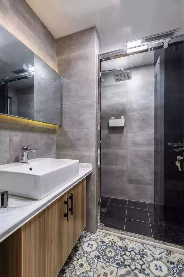 卫生间干湿分离,干区地面铺设小花砖迎合北欧风格的小元素。